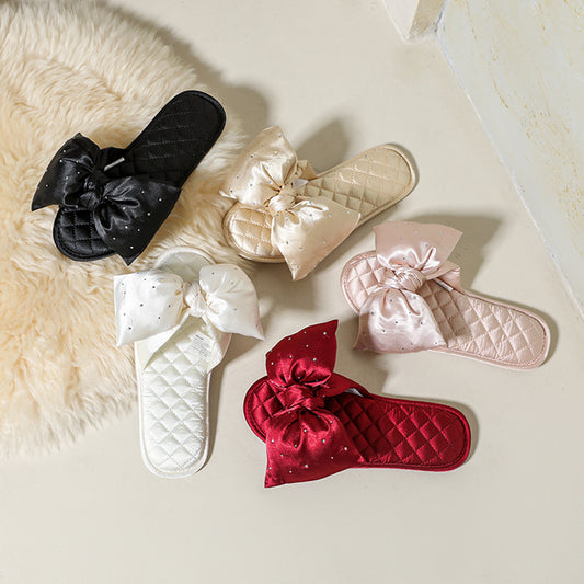 HEDGPETH Women's Slippers with Cute Bow and Bling Rhinestone House Indoor or Outdoor Slippers